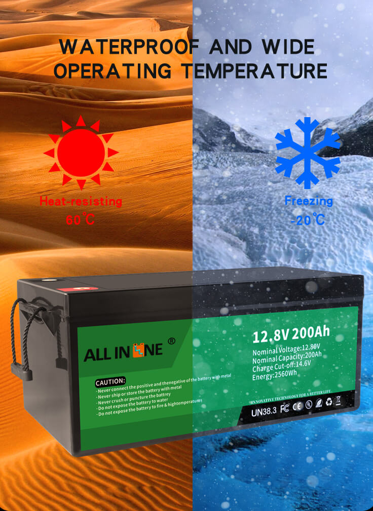 4. Geniş işləmə temperaturu: LiFePO4 batareyası -20 ° C ~ 60 ° C geniş işləmə temperaturu üçündür.