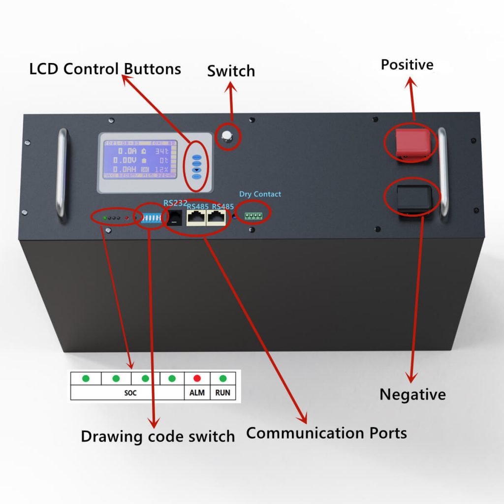 48V 100Ah lifepo4 batareya paketi ağıllı litium batareya idarəetmə sistemi ilə, həddindən artıq gərginlik, aşağı gərginlik, həddindən artıq cərəyan, yüksək temperatur, aşağı temperatur və qısa dövrə qorunması və bərpa kompleksi funksiyasını təmin edir. Doldurma və boşaltma zamanı dəqiq SOC ölçülməsi və SOH sağlamlıq vəziyyəti statistikasını həyata keçirin. Doldurma zamanı gərginlik balansına nail olun. Əsas kompüter proqramı vasitəsilə insan-kompüter qarşılıqlı əlaqəsi, gərginlik, cərəyan, temperatur və digər həyəcan mühafizəsi parametrlərini göstərin və təyin edin, batareyanın iş vəziyyətinin real vaxt məlumatlarını və tarixi məlumatlarını saxlayın və göstərin. Müxtəlif yuxu və oyanma üsulları var. Paralel əlaqə RS485, Via RS232, RS485, Parametr konfiqurasiyası və məlumatların monitorinqi kompüter proqramı insan-kompüter qarşılıqlı əlaqəsi vasitəsilə məlumat rabitə terminalı üçün PC ilə əlaqə qura bilər. Evdə enerji saxlama çeviricilərində, qapalı və açıq baza stansiyalarında və s. geniş istifadə edilə bilər.