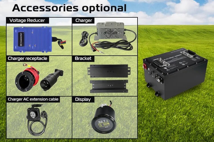 【Ağıllı Batareya Monitoru LCD】ALL IN BİR litium golf arabası akkumulyatoru güclü sürətlənmə və performans təklif edir, bu da istifadəçilərə çətin əraziləri fəth etməyə və bir şarjla 50 milə qədər qolf məsafəsini genişləndirməyə imkan verir.