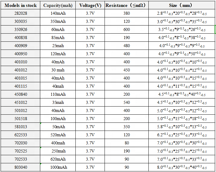 Məhsul Adı | 581013 3.7V 50mAh polimer lityum batareyası | Diqqət | |
