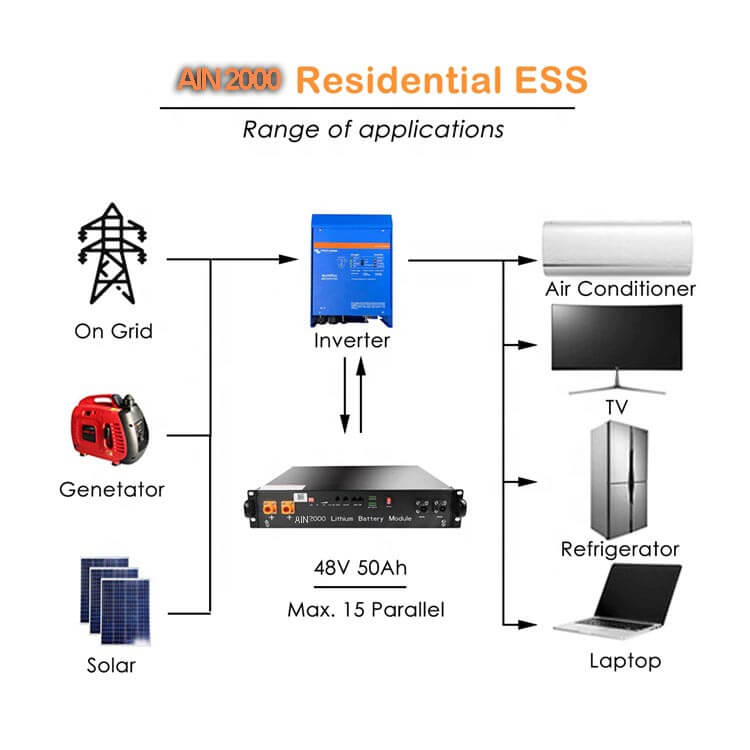 1.AIN2000 48v günəş sistemi batareyası yüksək performanslı LFP hüceyrəsi 3.2V 50Ah və EV standart quruluşu ilə təhlükəsizlik və üstün xidmət müddətini təmin edir.