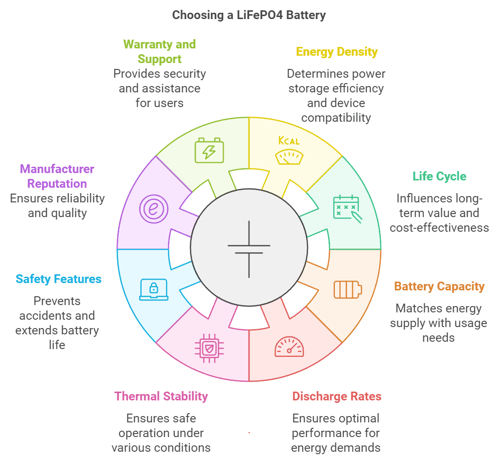 The factors that influence the performance of LiFePO4 batteries are: Battery Capacity: Determines the energy storage capabilities, denoted in ampere-hours (Ah). Discharge Rates: The...